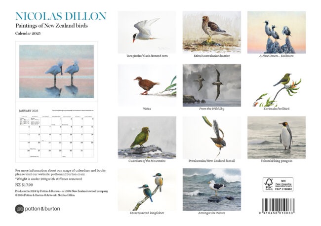 Nicolas Dillon NZ Bird Paintings 2025 Calendar